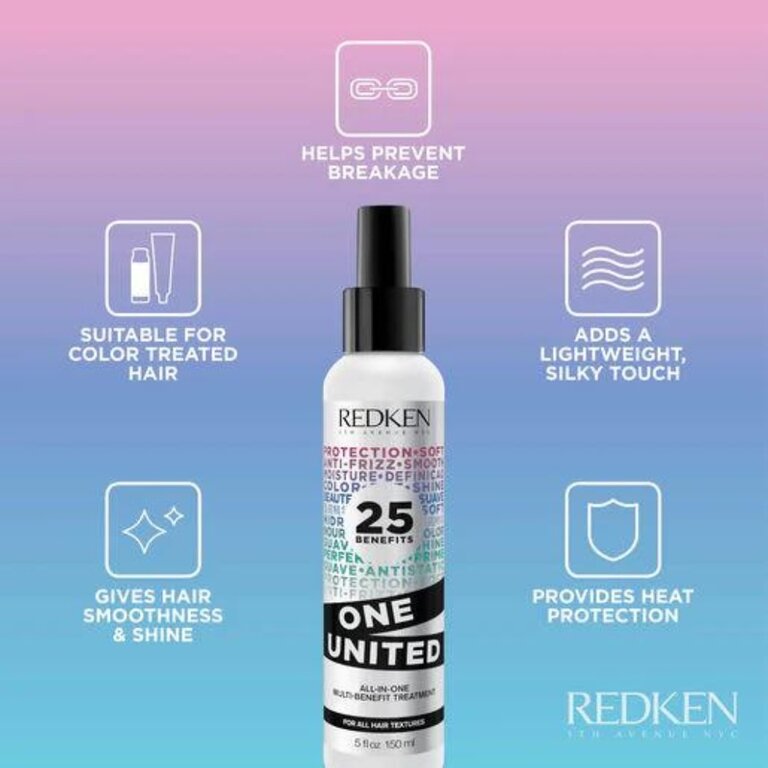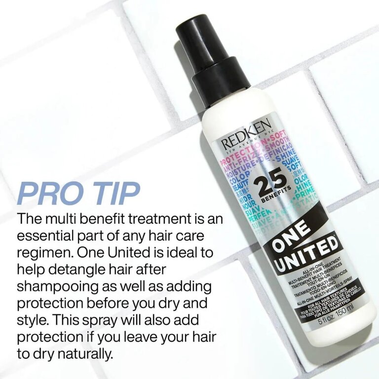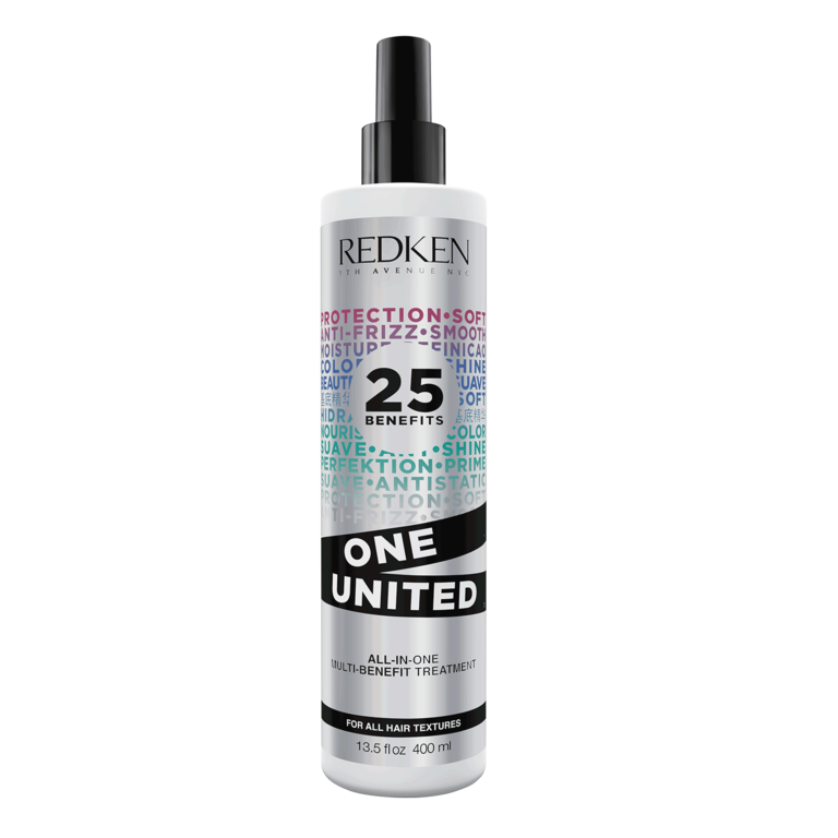 Le traitement multi-bénéfices sans rinçage "One United" de Redken est un vaporisateur traitement multi-bénéfices tout-en-un et offrant 25 bienfaits pour plus de souplesse, de protection et de beauté.