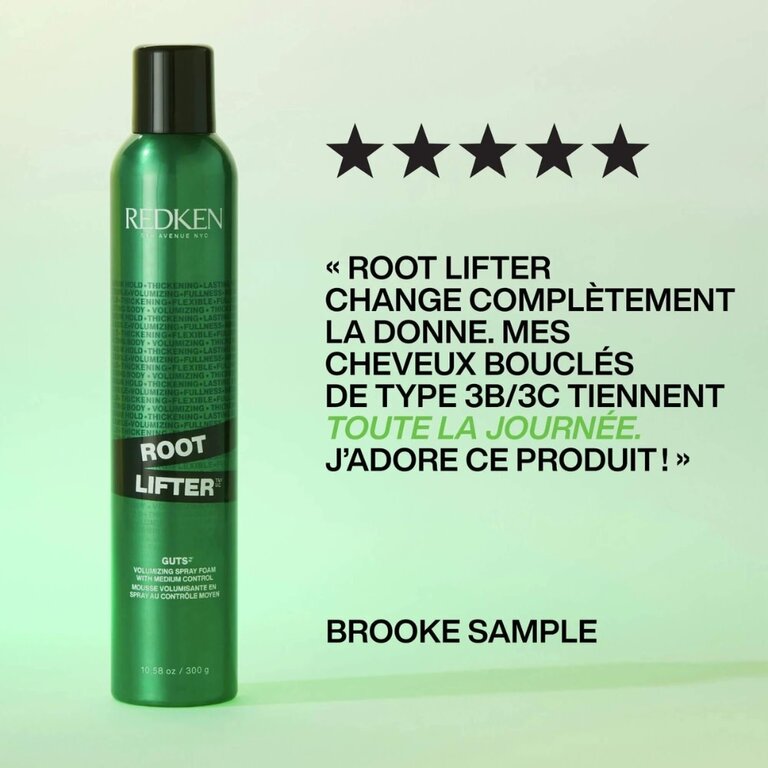 Le spray mousse volumisante pour les racines "Root Lifter" de Redken, anciennement nommée "Guts 10" est la plus vendue. Elle offre de l'épaisseur et de l'amplitude pour un volume de cheveux complet avec un style naturel et une structure flexible. Cette mousse volumatrice professionnelle convient aux coiffures épaisses ou fines, aux cheveux colorés et aux cheveux naturels. Obtenez une tenue moyenne, un contrôle des frisottis et des mèches rebondissante, le tout avec une sensation flexible et naturelle.