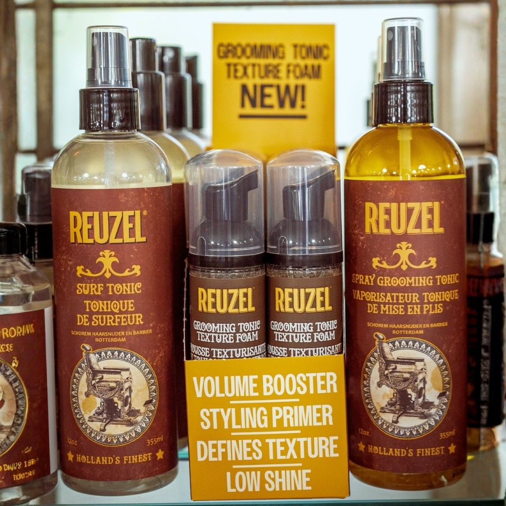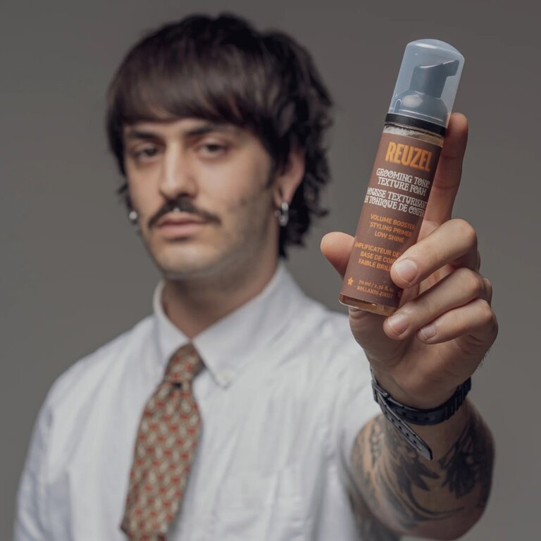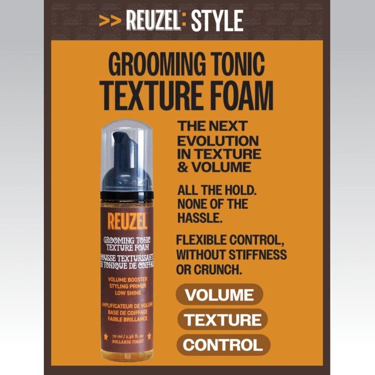 Le "Grooming Tonic Texture Foam" de Reuzel, est une mousse coiffante légère conçue pour apporter du volume naturel, de la texture et un contrôle flexible sans alourdir les cheveux. Idéale comme base de coiffage, elle prépare les cheveux avant le séchage tout en offrant une finition propre, un aspect naturel et une brillance faible parfaitement adaptée aux styles modernes en salon barbier.