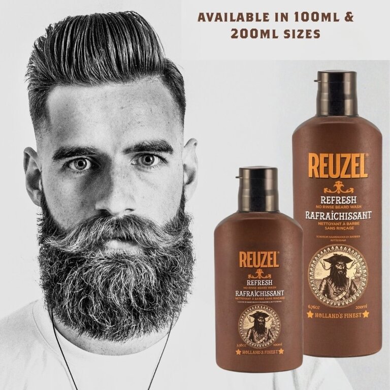 Parfois, une nuit en ville ne laisse pas le temps de prendre une deuxième douche. Mais au moins, votre barbe peut sentir comme si vous l'aviez fait. Considérez ce nettoyant pour barbe et visage pour hommes Reuzel ''Refresh'' sans rinçage pour votre douche à emporter lorsque vous n'avez rien de bon.