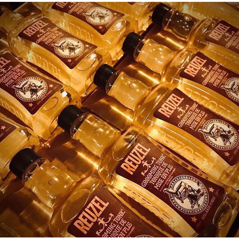 Mouillez les cheveux correctement. Appliquez le tonique de toilettage Reuzel. Et puis séchez en peignant dans un style pompadour ou autre. Ensuite, vous pouvez appeler si vous voulez laisser les cheveux gros et naturels, ou les apprivoiser un peu avec l'une de nos pommades. Pour des cheveux très brillants, appliquez en outre le "Grooming Tonic" avec parcimonie sur un style sec et fini.