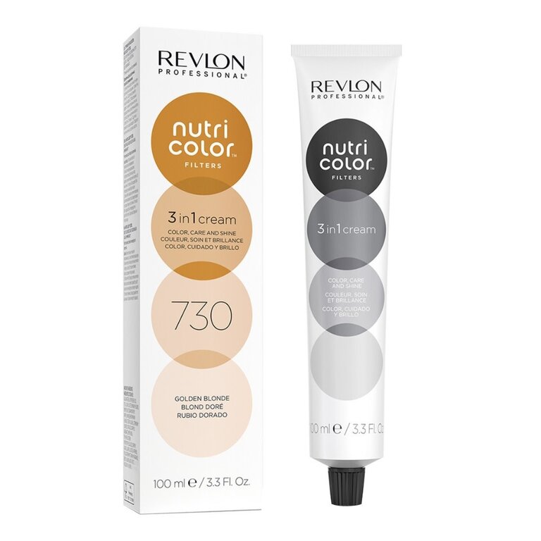 Les crèmes 3 en 1 "Nutri Color Filters" de Revlon Professional sont des masques de coloration semi-permanente qui offrent trois bénéfices essentiels pour les cheveux en un seul produit : Couleur, soin et brillance. Que ce soit pour raviver la couleur entre 2 colorations, pour neutraliser des reflets indésirables ou pour créer de nouvelles nuances. Avec un éventail de 27 couleurs toutes miscibles entre elles, les possibilités sont grandes.