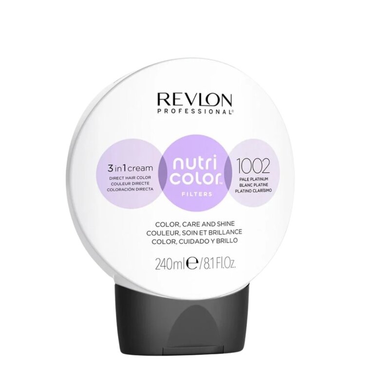 Les crèmes 3 en 1 "Nutri Color Filters" de Revlon Professional sont des masques de coloration semi-permanente qui offrent trois bénéfices essentiels pour les cheveux en un seul produit : Couleur, soin et brillance. Que ce soit pour raviver la couleur entre 2 colorations, pour neutraliser des reflets indésirables ou pour créer de nouvelles nuances. Avec un éventail de 27 couleurs toutes miscibles entre elles, les possibilités sont grandes.