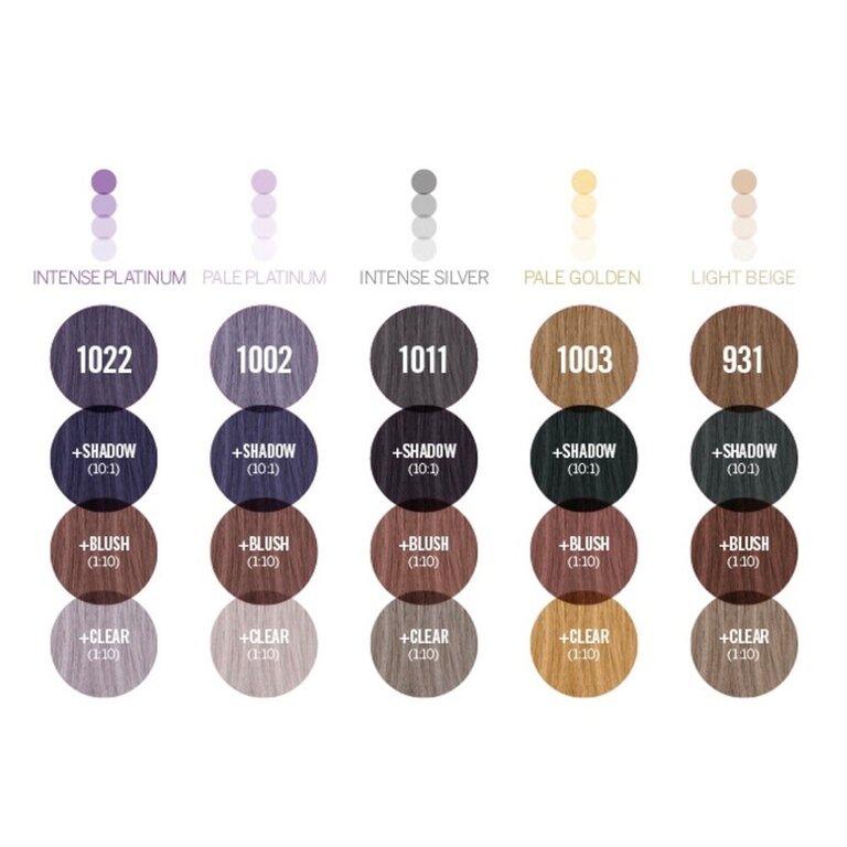 Si vous souhaitez un résultat plus subtil ou une couleur pastel, mélangez la nuance de couleur choisie avec la teinte "000 Clear" pour diluer et pasteliser le pigment.
