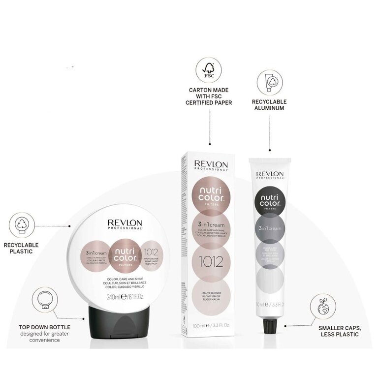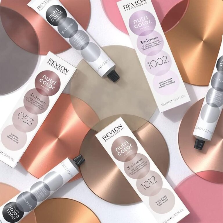 Les crèmes 3 en 1 "Nutri Color Filters" de Revlon Professional sont des masques de coloration semi-permanente qui offrent trois bénéfices essentiels pour les cheveux en un seul produit : Couleur, soin et brillance. Que ce soit pour raviver la couleur entre 2 colorations, pour neutraliser des reflets indésirables ou pour créer de nouvelles nuances. Avec un éventail de 27 couleurs toutes miscibles entre elles, les possibilités sont grandes.