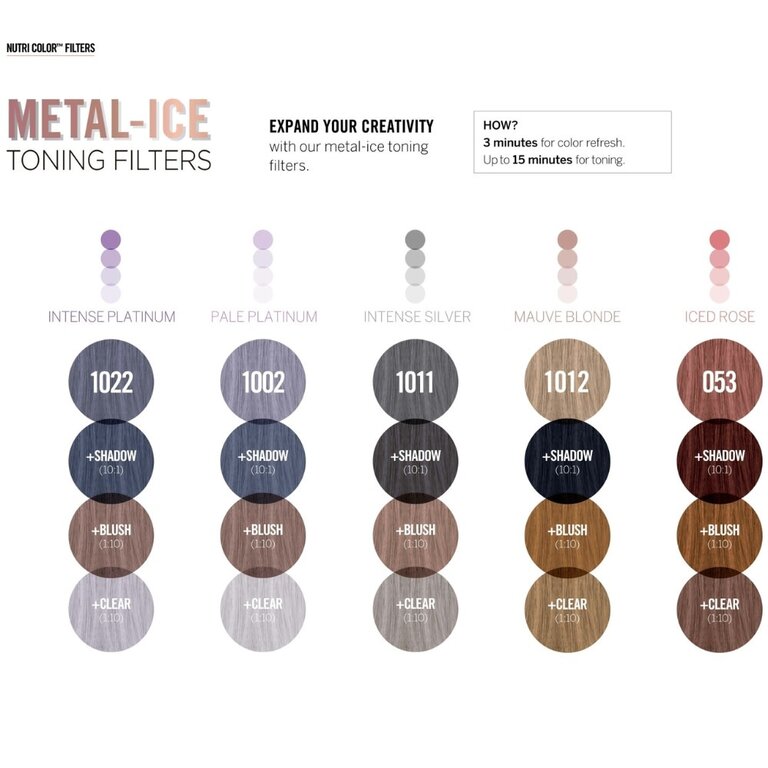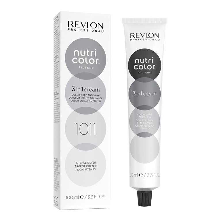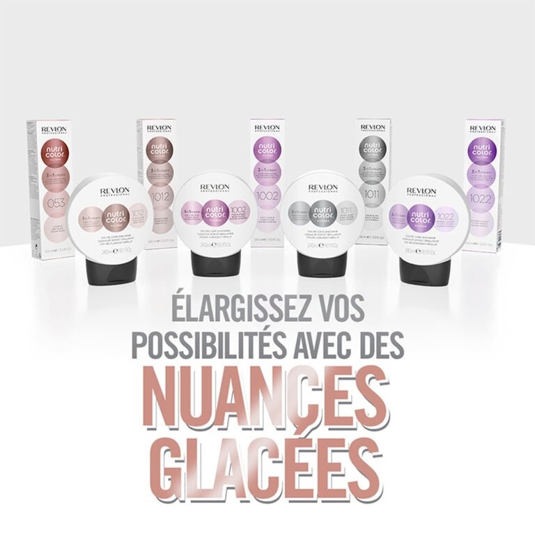 Les crèmes 3 en 1 "Nutri Color Filters" de Revlon Professional sont des masques de coloration semi-permanente qui offrent trois bénéfices essentiels pour les cheveux en un seul produit : Couleur, soin et brillance. Que ce soit pour raviver la couleur entre 2 colorations, pour neutraliser des reflets indésirables ou pour créer de nouvelles nuances. Avec un éventail de 27 couleurs toutes miscibles entre elles, les possibilités sont grandes.