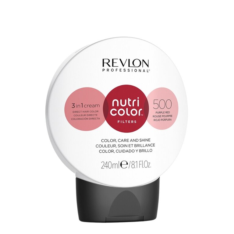 Les crèmes 3 en 1 "Nutri Color Filters" de Revlon Professional sont des masques de coloration semi-permanente qui offrent trois bénéfices essentiels pour les cheveux en un seul produit : Couleur, soin et brillance. Que ce soit pour raviver la couleur entre 2 colorations, pour neutraliser des reflets indésirables ou pour créer de nouvelles nuances. Avec un éventail de 27 couleurs toutes miscibles entre elles, les possibilités sont grandes.