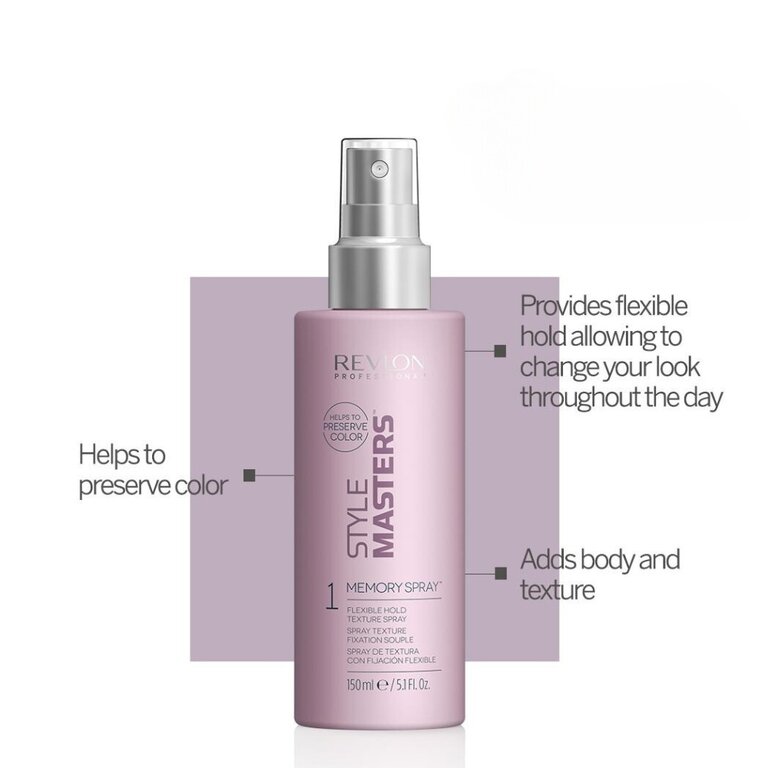 Le spray texture fixation souple "Style Masters Memory Spray" est un vaporisateur à tenue légère à effet mémoire qui crée des styles remaniables, permettant de changer le look tout au long de la journée. Conçu pour tous les types de cheveux qui recherchent un traitement capillaire volumateur et une texture souple et naturelle à leur style. Il aide à préserver la couleur.