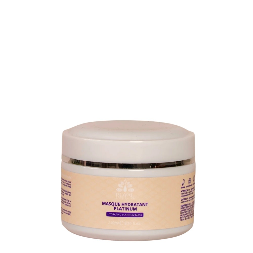 Avantages : Le masque hydratant aide à garder les cheveux forts et sains, prévient la casse des cheveux et peut aider à réduire la chute des cheveux. Son pigment bleu foncé aide à neutraliser les tons jaunes/dorés indésirables. Il est idéal pour l’entretien du botox capillaire Royal et faire durer son effet.