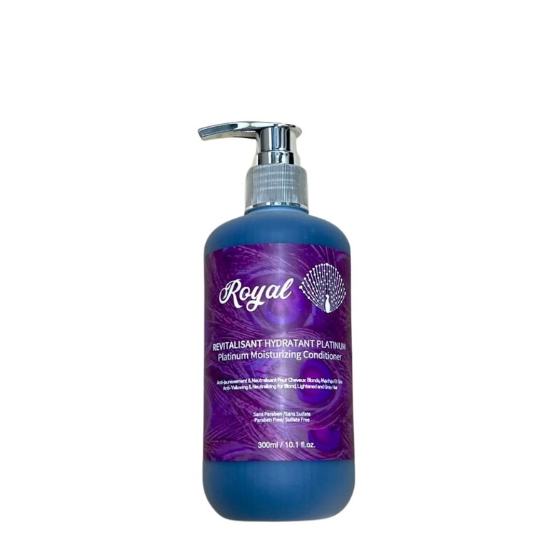 Le revitalisant Royal hydratant Platinum est spécialement conçu pour toutes les nuances de cheveux argentés, gris et blonds afin d’éliminer les tons jaunes et cuivrés, d’améliorer les reflets et de stimuler la brillance, laissant les cheveux nourris et radieux.