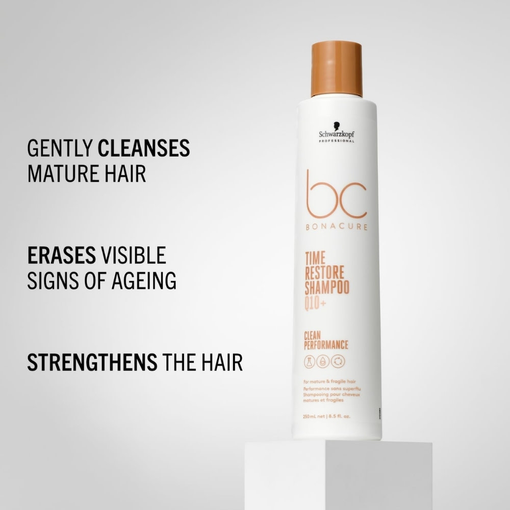 Avec le temps, l’épuisement des réserves de kératine rend la structure capillaire plus poreuse. Le shampoing anti-âge "Time Restore" de Bonacure par Schwarzkopf Professional répond à cette problématique en relançant la synthèse de cette protéine essentielle.