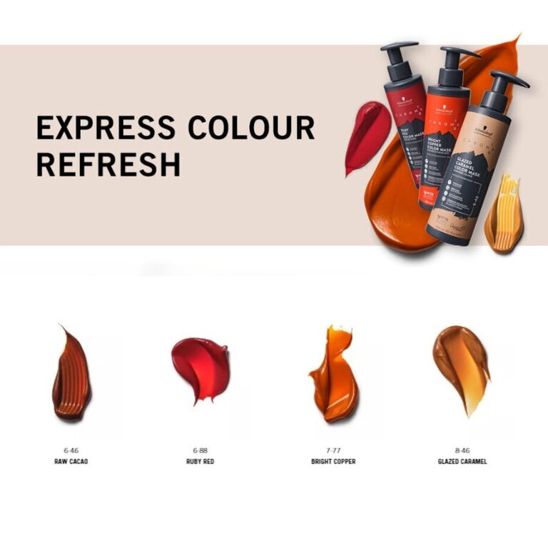 Offrant une tonalité de couleur personnalisable, rehaussant et rafraîchissant les tons cuivrés et rouges, le masque pigmentant "Chroma ID Bonding Color Mask" 7-77 - Cuivré étincelant de Schwarzkopf Professional est un masque de couleur semi-permanent polyvalent formulé avec une technologie de liaison pour fournir un conditionnement en profondeur et une brillance instantanée, pour une flexibilité de couleur à 100 % sans les dommages. Ce masque pigmentant offre une formule hautement pigmentée, douce et crémeuse, facile à mélanger et à appliquer, qui offrent un boost de couleur extra-vive avec un soin en profondeur.