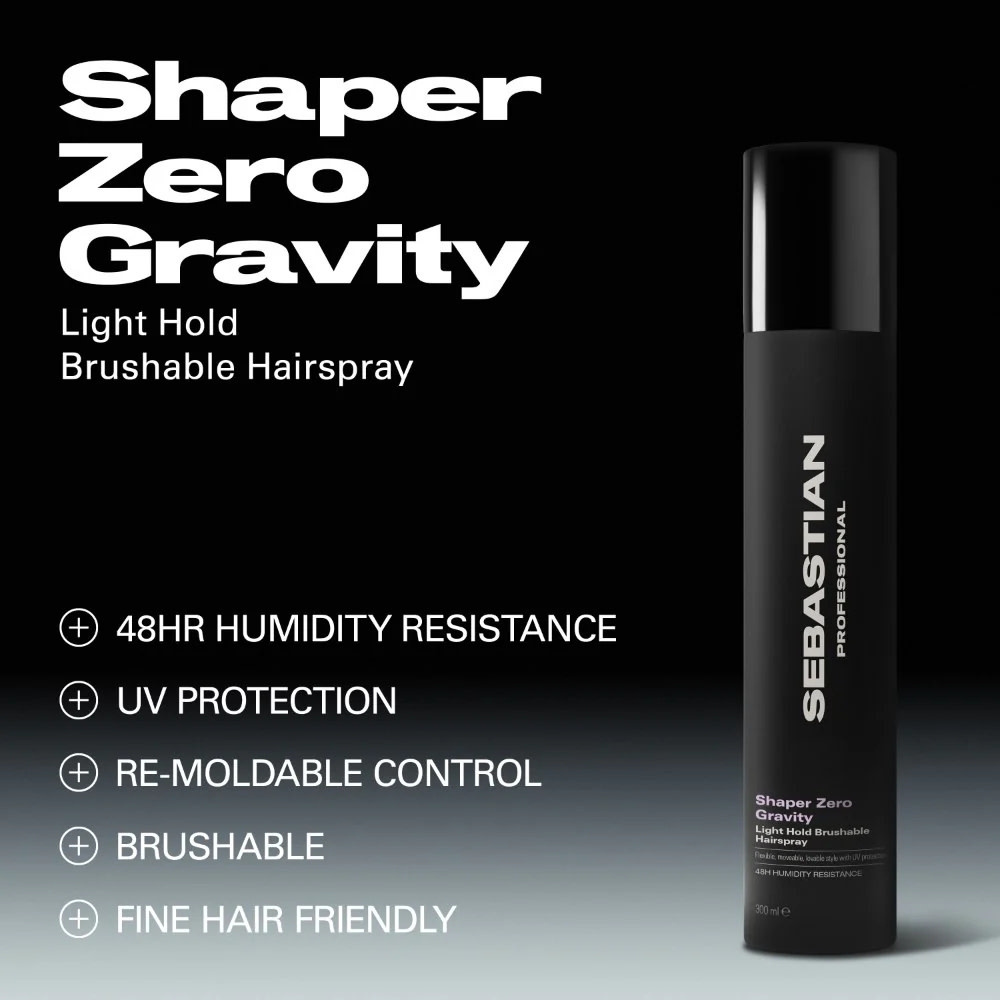 Le fixatif "Shaper Zero Gravity" de Sebastian offre une maîtrise invisible qui libère le mouvement sans jamais figer la fibre. C’est la laque idéale des textures fines en quête de galbe en racine et d’une souplesse absolue qui dure tout au long de la journée.