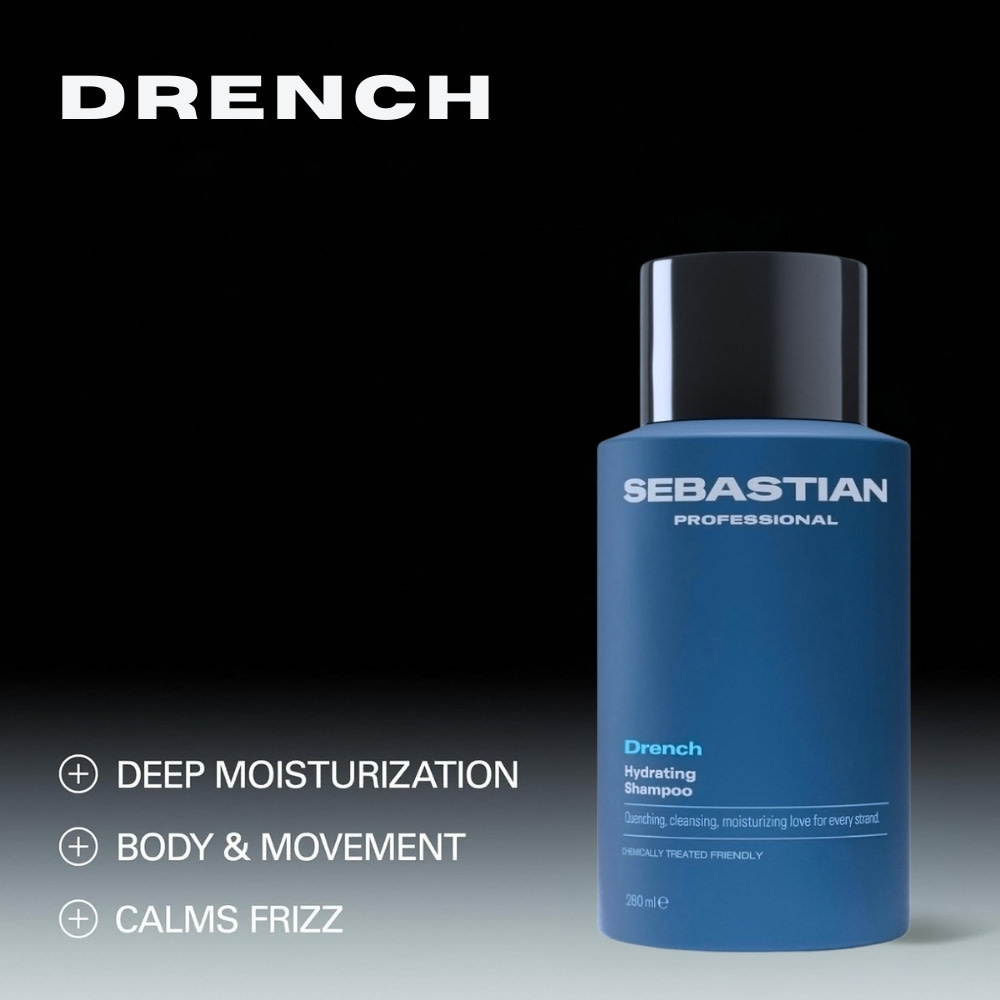 Le shampoing hydratant "Drench" de Sebastian Professional est la réponse ultime pour les cheveux secs, rêches ou assoiffés. Sa formule riche et onctueuse nettoie en douceur tout en infusant la fibre d’une hydratation profonde. Conçu pour désaltérer les mèches déshydratées, il assouplit la fibre pour redonner au cheveu sa vitalité et son mouvement naturel. Cette expérience de soin laisse une chevelure intensément nourrie, une douceur retrouvée et un style parfaitement maîtrisé.