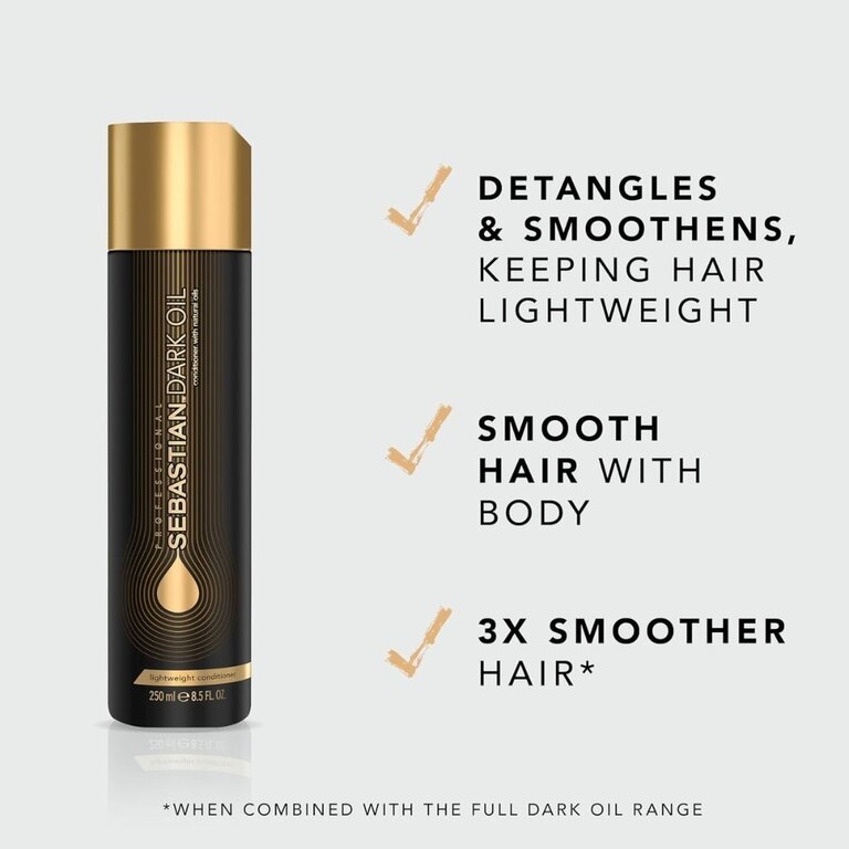La gamme "Dark Oil" de Sebastian Professionnel est formulé d'un mélange spécial d'huiles, y compris l'huile de jojoba et l'huile d'argan pour un puissant mélange d'acides gras oméga, de vitamines et de minéraux. Elle procure des cheveux 3x plus lisses, brillants et d'apparence saine à chaque utilisation.