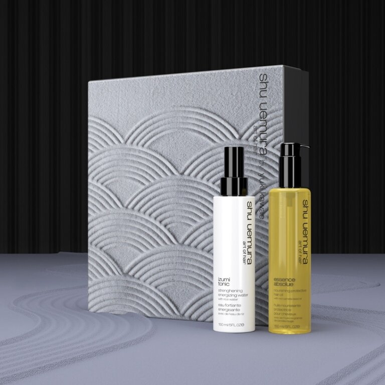 Découvrez le duo star Izumi Tonic x Essence Absolue de Shu Uemura, l'alliance parfaite pour des cheveux renforcés et éclatants de santé. Composé du sérum fortifiant Izumi Tonic et de l'huile nourrissante Essence Absolue, ce duo protège, nourrit et fait briller vos cheveux, tout en légèreté. C'est le rituel idéal pour des cheveux visiblement plus sains, sans être alourdis.