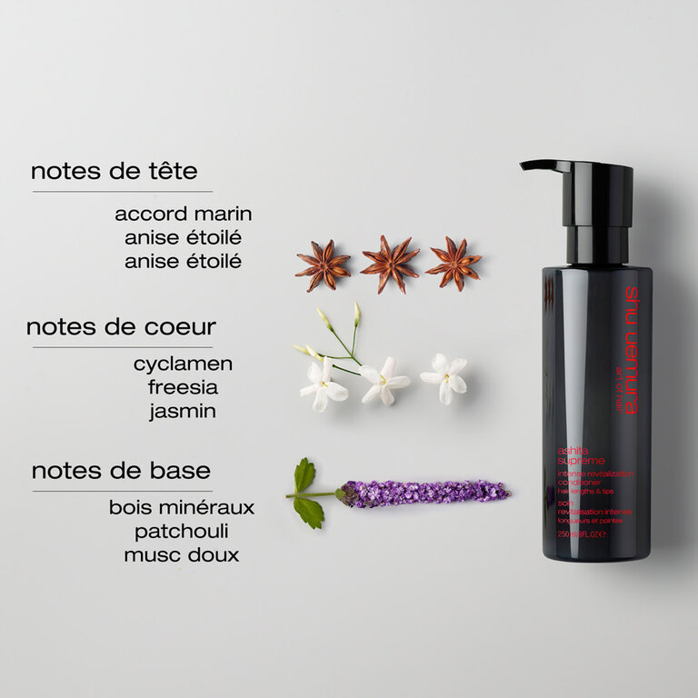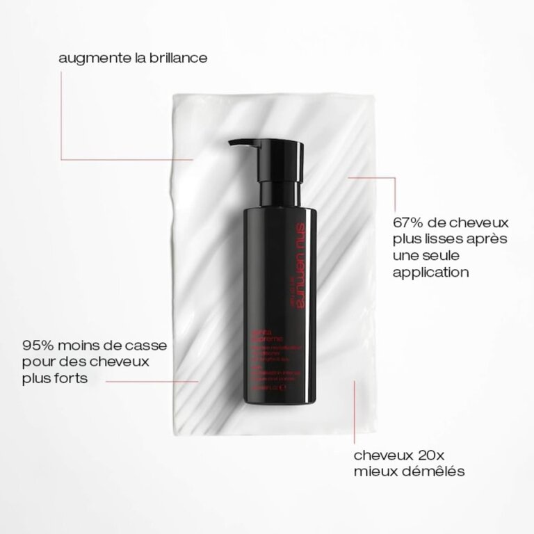 Révélez une chevelure transformée grâce au revitalisant revitalisation intense "Ashita Supreme" par Shu Uemura. Expérimentez une douceur exceptionnelle, des cheveux 16 fois plus lisses, un éclat amplifié par 3, une hydratation profonde de 96% et une action anti-frisottis longue durée.