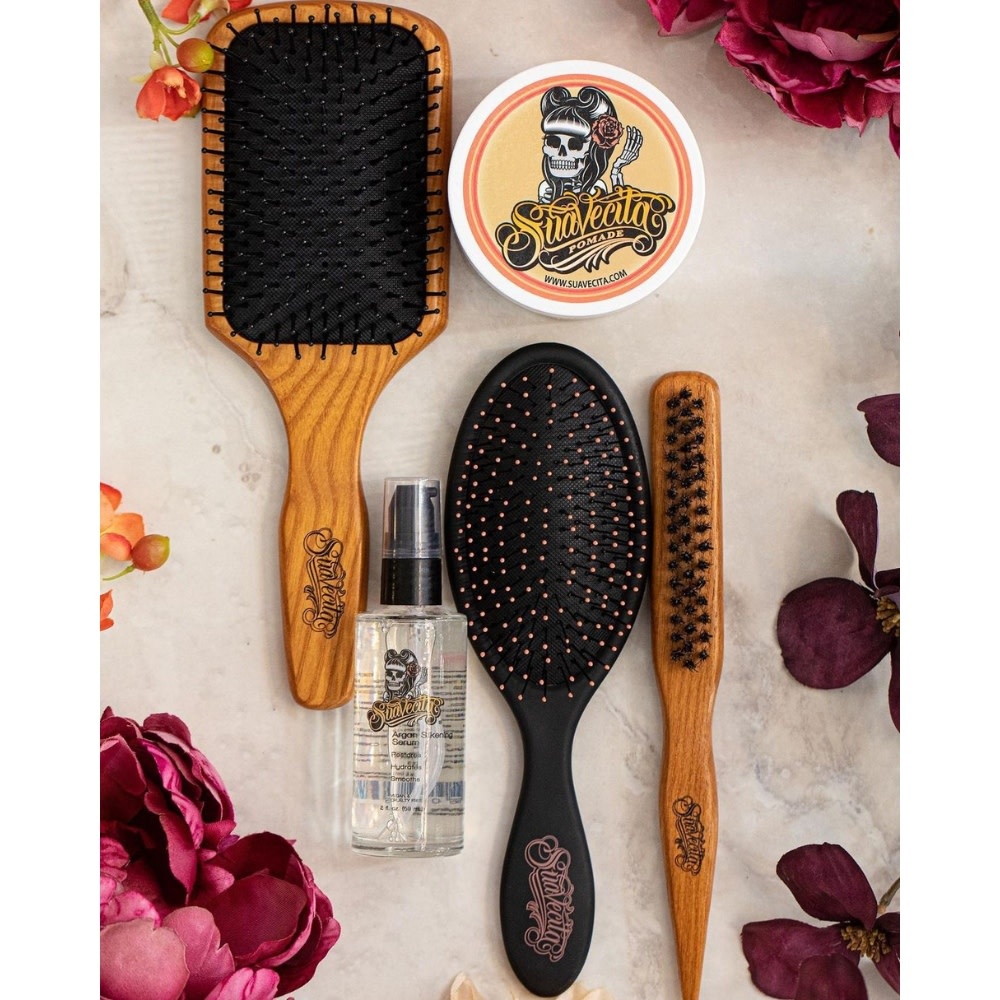 La brosse à crêper en poils de nylon "Teasing Brush" de Suavecita offre des poils qui s'agrippent facilement aux cheveux pour un crêpage efficace. Elle fonctionne parfaitement pour le crêpage, le lissage des cheveux au pourtour du visage et pour aider à la création de coiffures attachées volumineuses ou lichés. Son extrémité effilée permet de créer des séparations facilement. Fabriqué à partir de bois de haute qualité naturellement vieilli chaque brosse est unique et peut avoir de légère différence de couleur et de grain. Mais être unique, c'est ce qu'on aime.