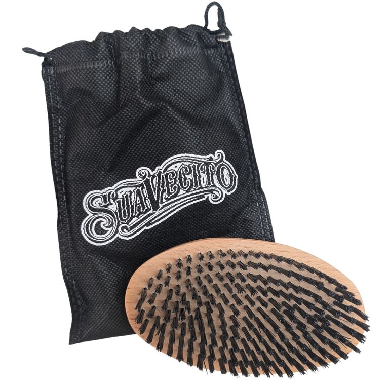La brosse à barbe "Synthetic Beard Brush" de Suavecito, dotée de poils synthétiques et d’un manche en bois, est un outil essentiel pour tout homme soucieux de l’entretien de sa barbe. Les poils synthétiques, offrent une rigidité idéale pour démêler efficacement les nœuds sans abîmer les poils. Cette brosse permet également de répartir uniformément les huiles naturelles de la barbe, contribuant à une apparence plus saine et plus brillante. En stimulant la peau sous la barbe, cette brosse favorise la circulation sanguine et encourage une croissance plus saine des poils. Utiliser cette brosse régulièrement peut vraiment améliorer l’apparence et la santé de votre barbe.