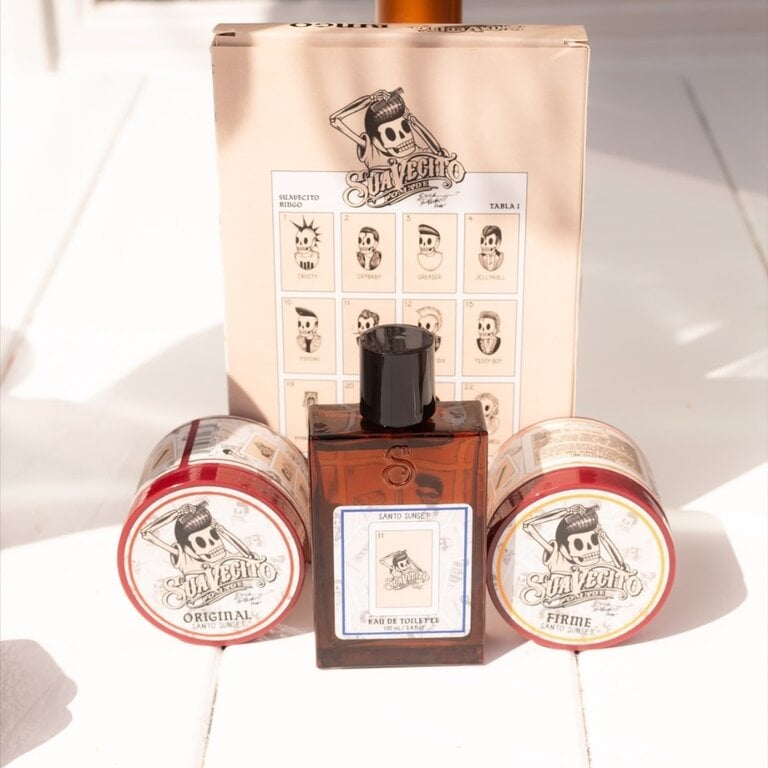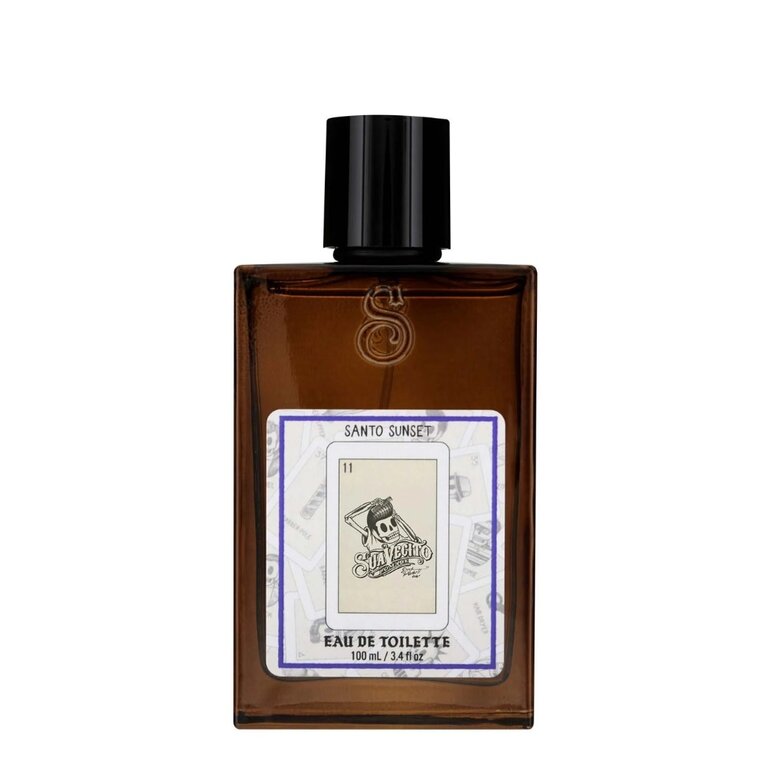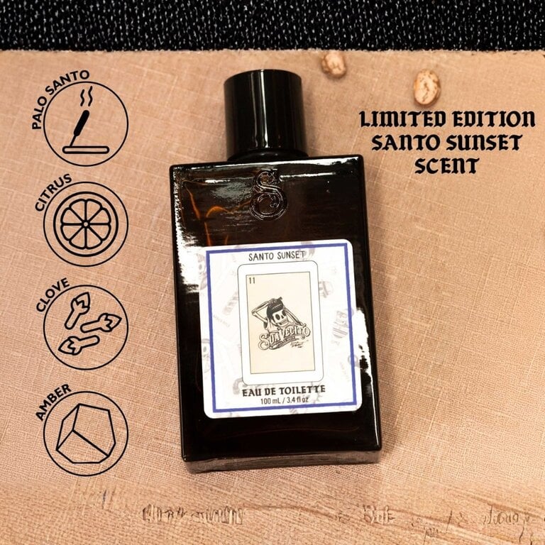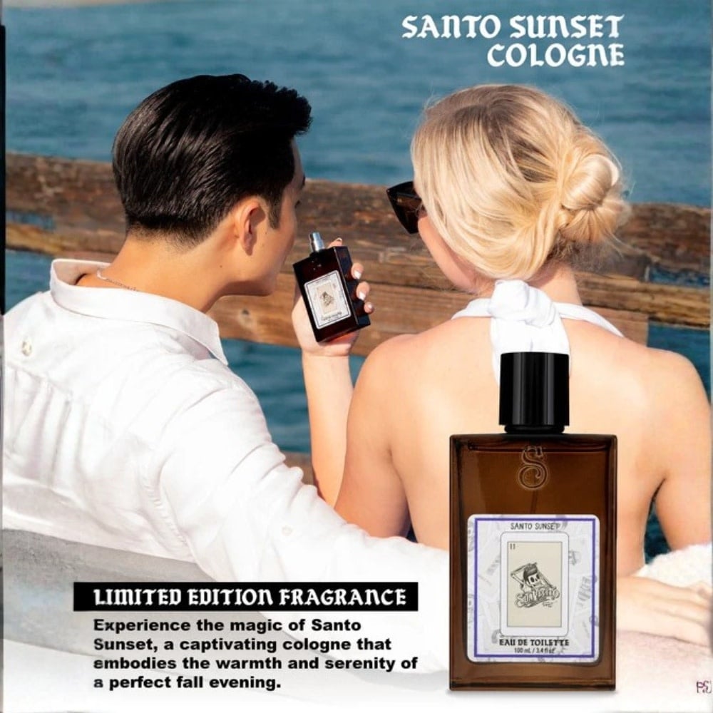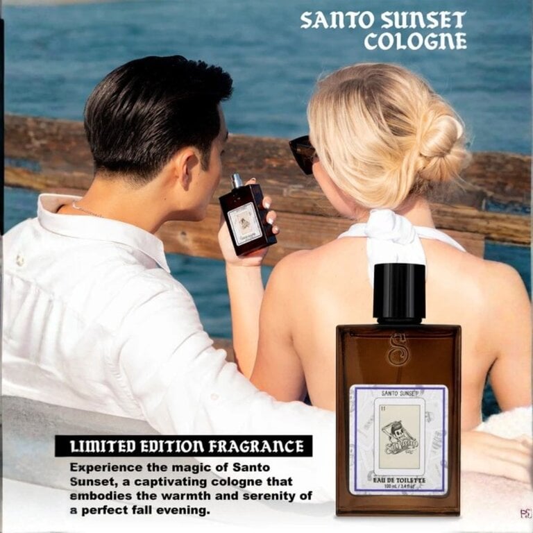 "Santo Sunset" est une eau de Cologne masculine en édition limitée, conçue par Suavecito. Ce parfum capture l’essence d’un coucher de soleil doré californien, mêlant fraîcheur lumineuse et chaleur boisée dans une fragrance à la fois relaxante et affirmée.