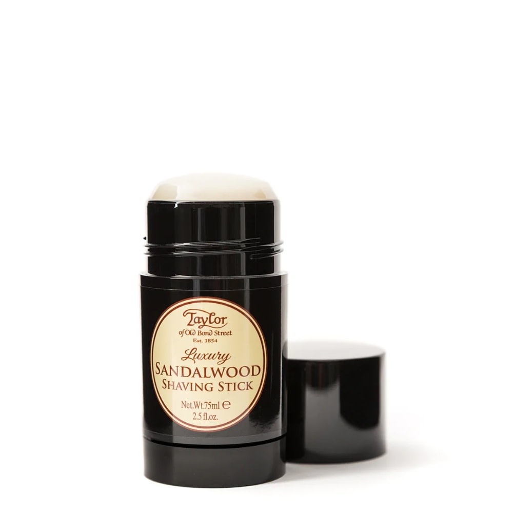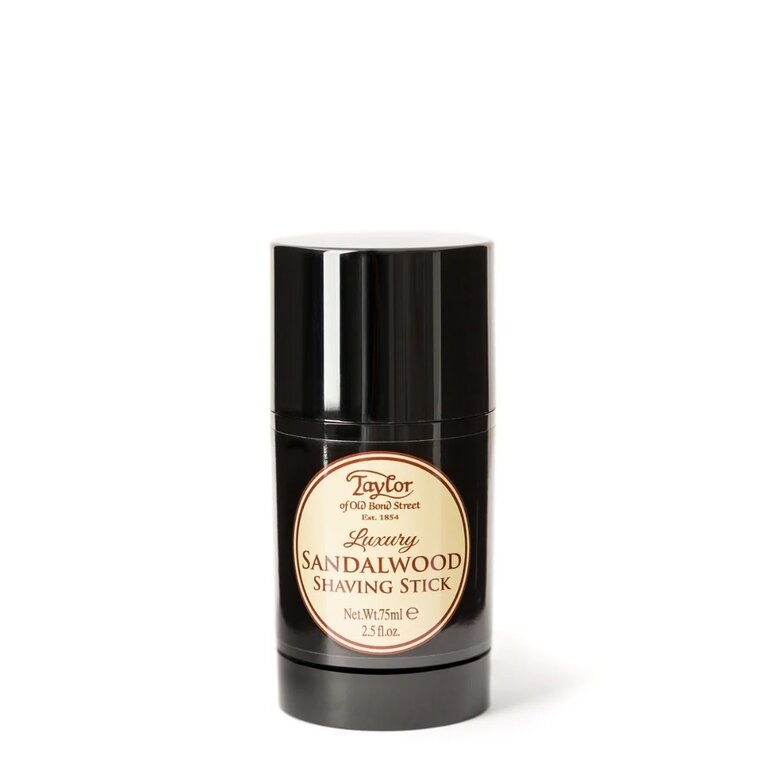 Le bâton de rasage "Sandalwood" de Taylor of Old Bond Street. Un véritable bâton de rasage de luxe pour hommes, au parfum discret de bois de santal.