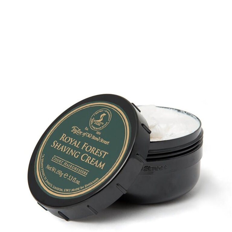 Fraîche et vibrante, la crème à raser Royal Forest offre une mousse riche et parfumée pour un rasage de près.