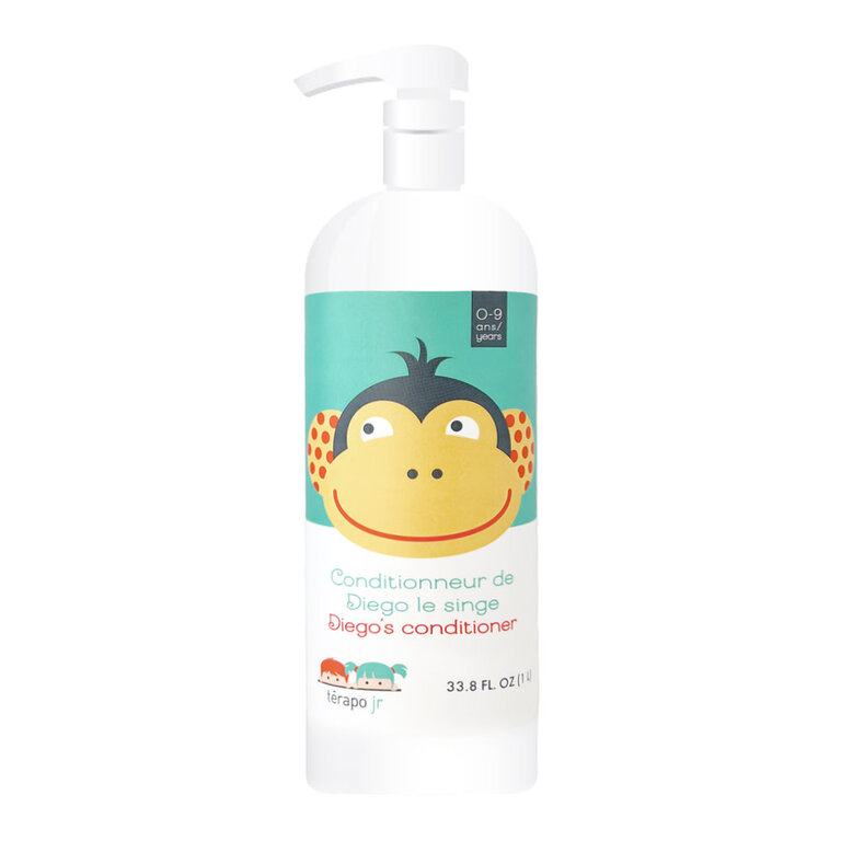 Diego le singe est vraiment très rigolo et il prend toujours soin de ses cheveux avant le dodo. Diego est très exigeant en matière d’environnement et prend ce qu’il y a de mieux pour ses cheveux. Le conditionneur Térapo Jr est conçu pour les enfants de 0 à 9 ans, par des parents soucieux de l’environnement.