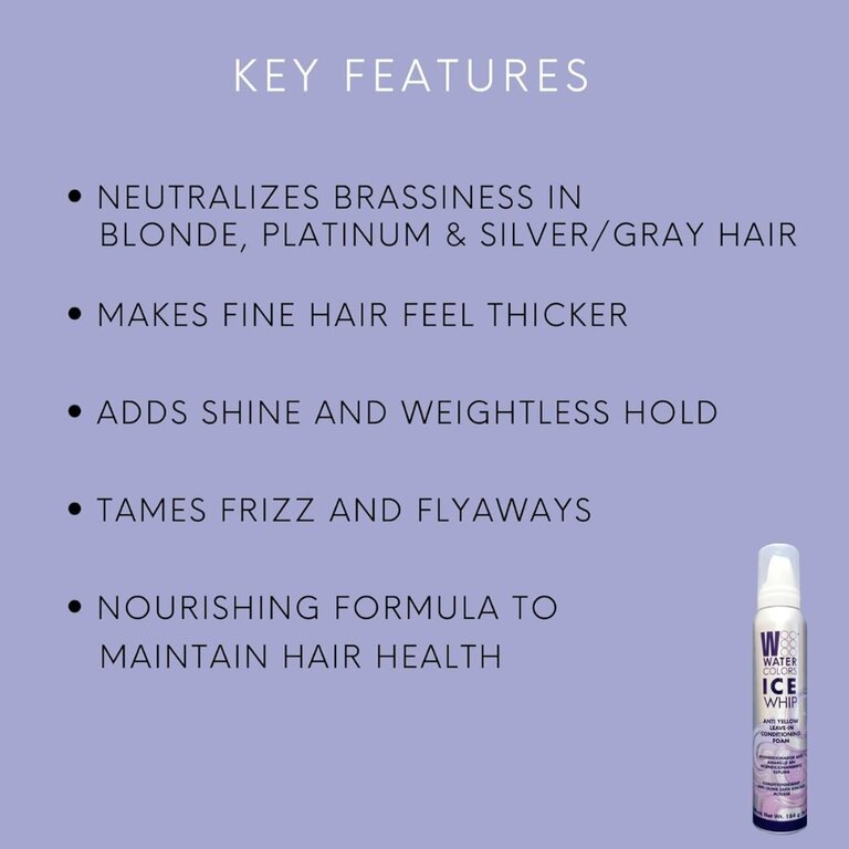 Évaluer Mousse violet anti-jaune "WaterColors Ice Whip" conditionnement sans rinçage - Pour cheveux blonds, blancs ou gris (194ml/6.5oz)