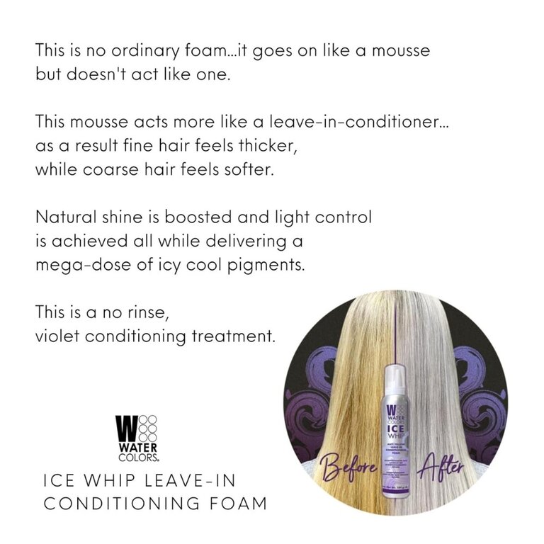 S'inscrireMousse violet anti-jaune "WaterColors Ice Whip" conditionnement sans rinçage - Pour cheveux blonds, blancs ou gris (194ml/6.5oz)