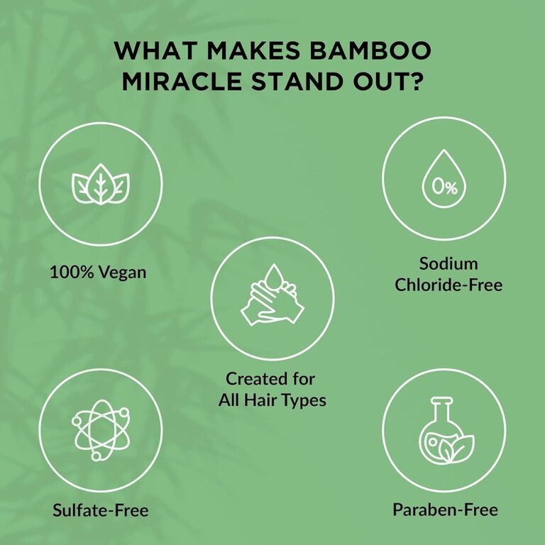 - Extraits de bambou : Est l'une des sources de silice les plus riches au monde, qui contribue à la force et à la résilience des cheveux. Il favorise également la croissance des cheveux et possède d’excellentes propriétés antioxydantes.