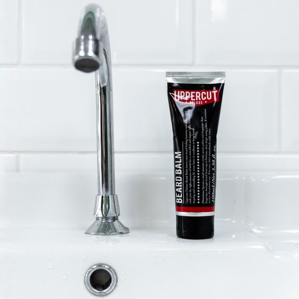 Pour une barbe plus souple et hydratée, utiliser d’abord l’Huile à Barbe Uppercut Deluxe, puis appliquer le Beard Balm pour donner forme et contrôle.