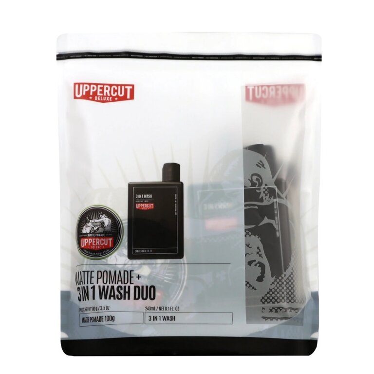 Le duo "Matte & 3 In 1" de Uppercut Deluxe réunit deux essentiels pour une routine masculine simple, efficace et stylée. La pommade matte offre une tenue souple à forte avec un fini naturel sans brillance, idéale pour les coiffures classiques ou texturées. Le nettoyant 3 en 1, quant à lui, nettoie les cheveux, le visage et le corps en un seul geste grâce à sa formule douce à l’huile de coco. Ensemble, ils assurent un look impeccable et une peau fraîche, jour après jour.