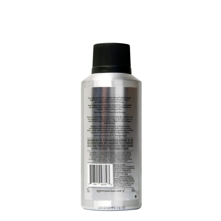 Idéal pour les styles "loose", les looks désinvoltes, les effets ébouriffés, les coupes longues souples, ou encore pour donner plus de vie aux undercuts texturés, ce spray peut s’utiliser seul sur cheveux secs pour obtenir immédiatement un effet aérien et texturé. Il excelle aussi comme pré‑styler sur cheveux humides, où il renforce le volume et facilité le contrôle avant le séchage, tout en préparant la chevelure à recevoir une pomade ou un produit coiffant Uppercut.