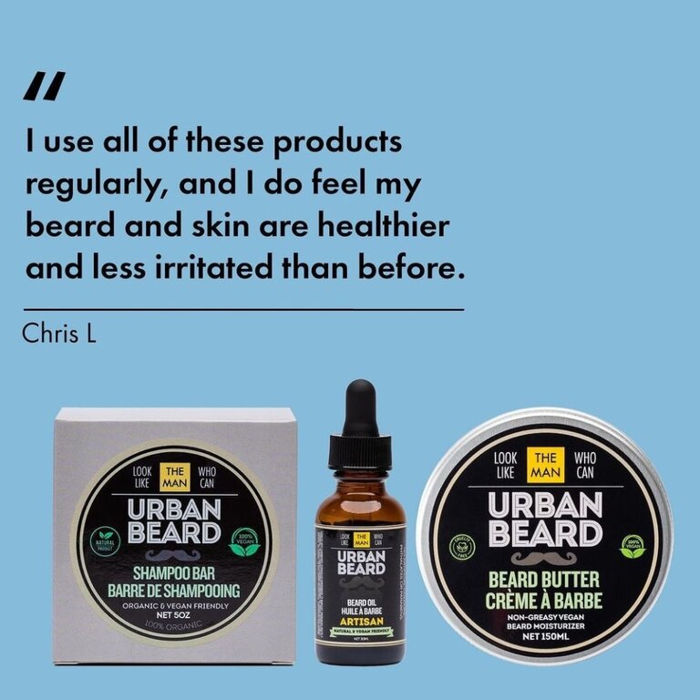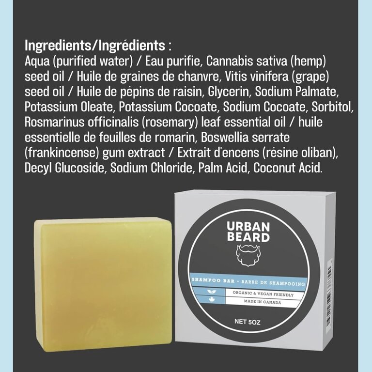 Le shampoing à barbe en barre de Urban Beard, est conçu pour les hommes. Contrairement aux shampoings classiques qui assèchent la barbe et la peau ou aux savons faciaux qui laissent des résidus collants, ce shampooing solide nettoie en douceur la barbe et la peau sensible en dessous. Le résultat est une barbe propre, douce et agréablement parfumée. Ce pain de shampooing de 142 g/5.0 oz est robuste et durable, reconnu comme l’un des produits les plus appréciés de la gamme Urban Beard.