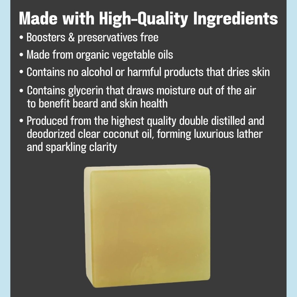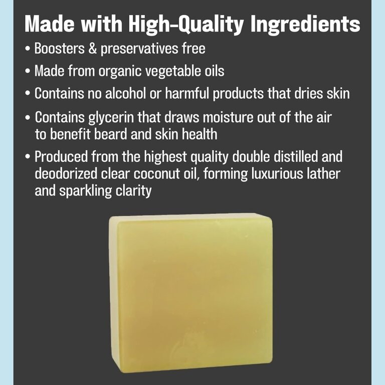 Formulé sans agents moussants artificiels ni conservateurs, il est fabriqué à partir d’huiles végétales biologiques. Sans alcool ni ingrédients agressifs, il respecte l’équilibre naturel du pH de la peau. La glycérine, émollient naturel, attire l’humidité de l’air pour hydrater barbe et peau. Grâce à l’huile de coco doublement distillée et désodorisée, il produit une mousse riche et claire qui se rince facilement sans laisser de film savonneux.