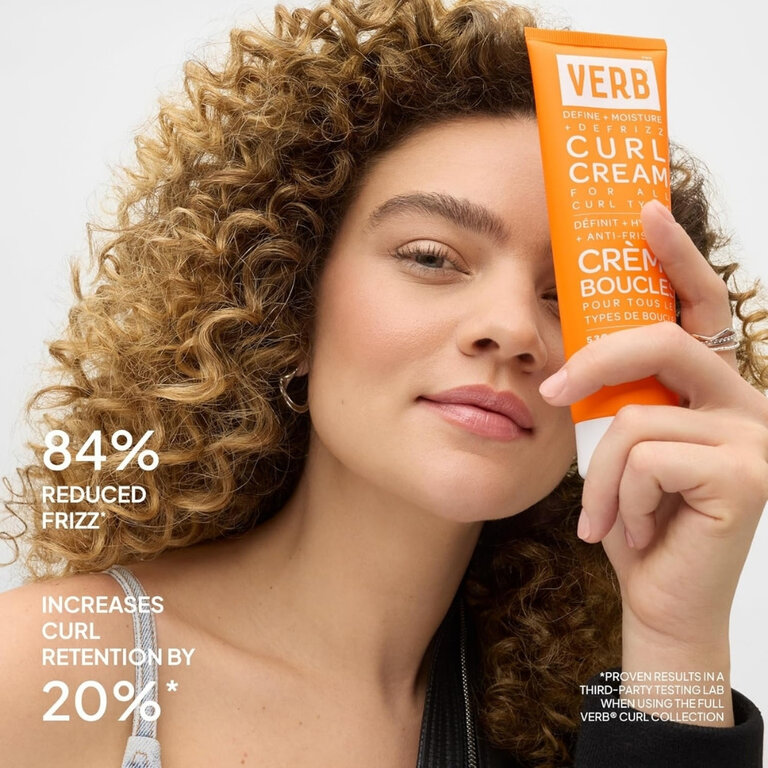 La crème "Curl Cream" de Verb offre une formule somptueuse qui hydrate la fibre en profondeur sans jamais l'alourdir. Elle définit chaque boucle avec une tenue légère, offrant une mémoire de forme durable tout en contrôlant les frisottis. Les cheveux sont sculptés, souples et conservent un mouvement naturel toute la journée.