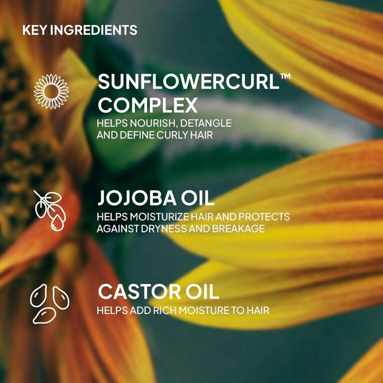 - Complexe "Sunflowercurl" : Un mélange exclusif d'huiles de tournesol qui favorise le démêlage et structure le ressort des boucles.