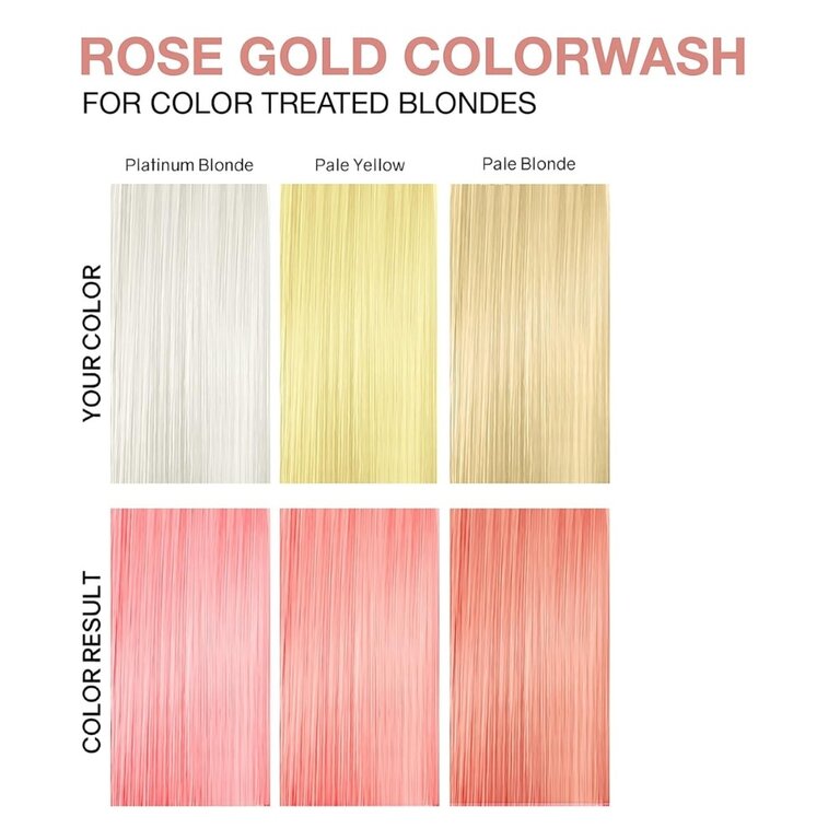 Le Shampoing nettoyant et colorant semi-permanent Viral Colorwash dépose un pigment de couleur Pastel Rose Gold sur des cheveux pré-éclaircis et blond clair pour créer une nouvelle couleur, maintenir ou rafraîchir la couleur.