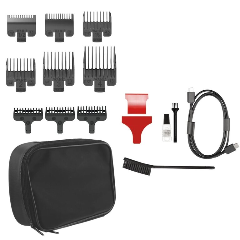 - 6 Guides de coupe pour Clipper : #1/2 (1.5mm/1/16"), #1 (3mm/1/8"), #1 1/2 (4.5mm/3/16"), #2 (6mm/1/4"), #3 (10mm/3/8"), #4 (13mm/1/2").