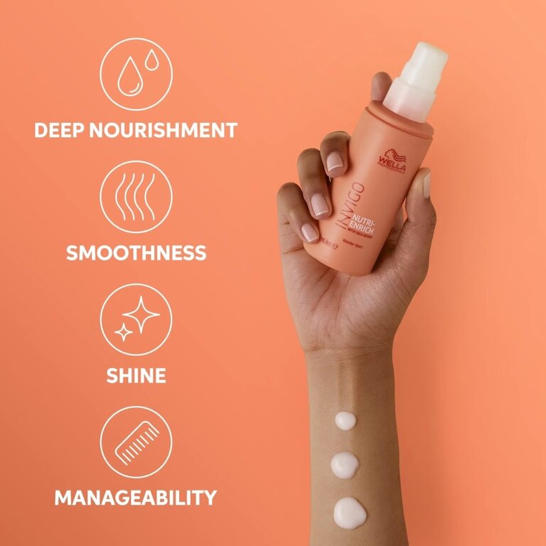 Le baume miracle nourrissant "Nutri-Enrich Wonder Balm" de Wella Professionals procure instantanément une hydratation et une nutrition durable tout en lissant la chevelure. Ce soin sans rinçage extra riche se fond dans le cheveu, pénétrant dans la fibre pour une douceur et une souplesse intense. Sa formule est enrichie de baie de goji riche en vitamine, minéraux et peptides ainsi que d'acide oléique, de vitamine E et de panthénol. Sa composition restitue la vitalité des cheveux en optimisant l'hydratation essentielle et en les protégeant des facteurs environnementaux nocifs, tels les rayons UV et la pollution.