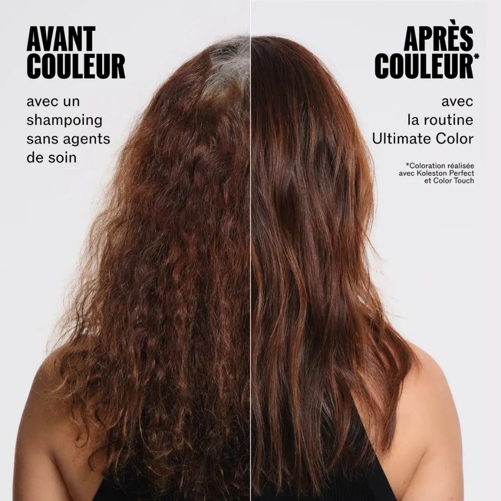 Après avoir fait le shampoing "Ultimate Color", appliquer le masque sur les cheveux humides, des longueurs aux pointes.