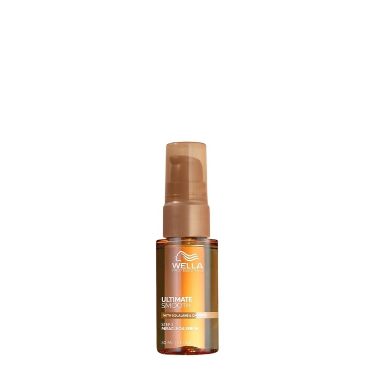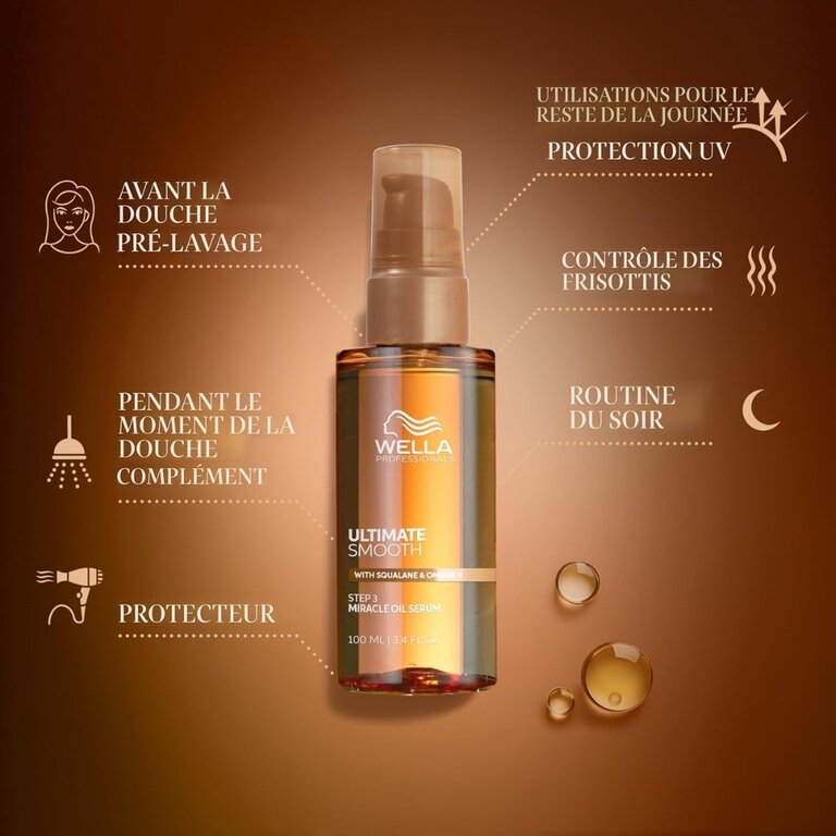 Le sérum à l'huile miracle "Ultimate Smooth" de Wella Professionals est un soin nourrissant capillaire de luxe sans rinçage conçu pour sublimer les cheveux secs et crépus.