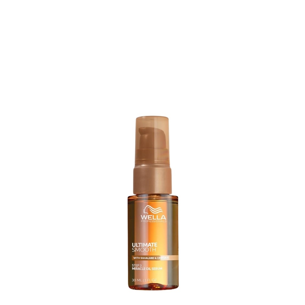 Le sérum à l'huile miracle "Ultimate Smooth" de Wella Professionals est un soin nourrissant capillaire de luxe sans rinçage conçu pour sublimer les cheveux secs et crépus. Grâce à sa formule concentrée enrichie en squalane et oméga-9, il nourrit les cheveux de l'intérieur et recréer une barrière protectrice à l'extérieur.