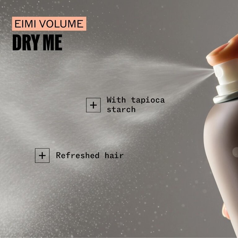 Le shampoing sec EIMI "Dry Me" de Wella Professionnals rafraîchit les cheveux et élimine le sébum des racines grâce à sa formule parfaite à base de fécule de tapioca. En plus d'offrir un nettoyage sans eau, il ajoute du volume et une légère texture à la chevelure.