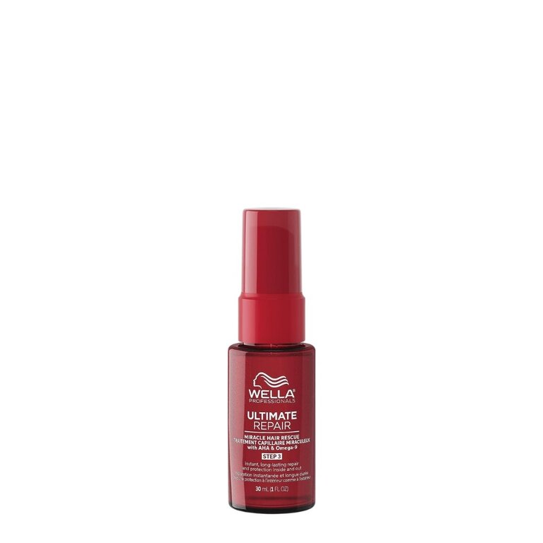 Le traitement capillaire miraculeux sans rinçage "Ultimate Repair Miracle Hair Rescue" de Wella Professionals est un soin reconstructeur intense qui aide à réparer les dommages causés aux cheveux en 90 secondes. Ce vaporisateur sans rinçage luxueux enrichi d'acide alpha-hyproxy AHA et d'oméga-9, démêle instantanément la chevelure, fortifie, lisse et reconstruit les cheveux de l'intérieur comme à l'extérieur. Les cheveux sont plus forts, lumineux et sans frisottis.